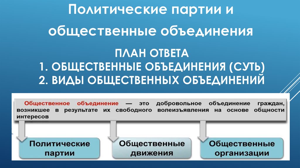 1. План ответа 1. Общественные объединения (суть) 2. виды Общественных объединений