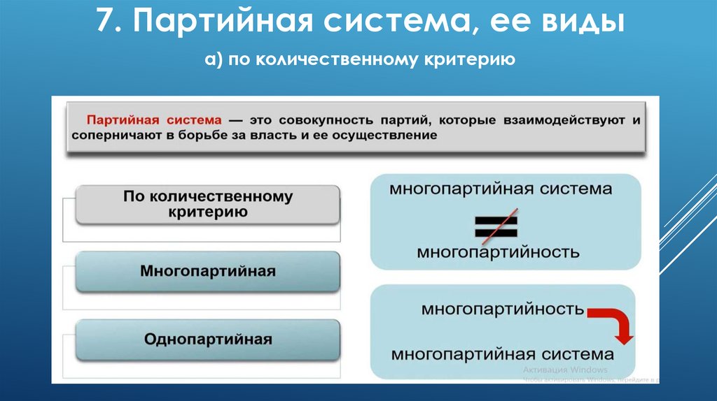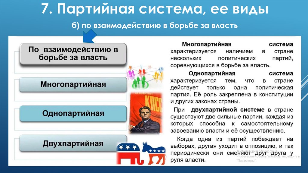 7. Партийная система, ее видыб) по взаимодействию в борьбе за власть