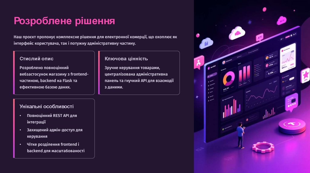 Розроблене рішенняНаш проєкт пропонує комплексне рішення для електронної комерції, що охоплює як
