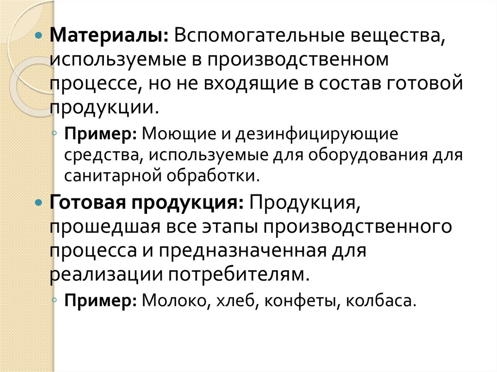 ◦ Пример: Для молочного завода сырьем является молоко, для