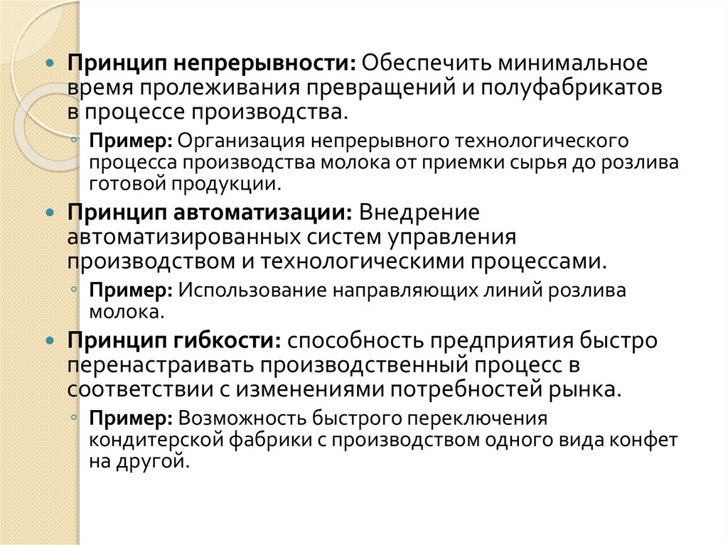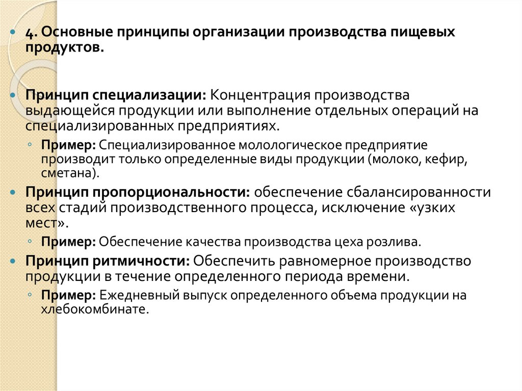 4. Основные принципы организации производства пищевых