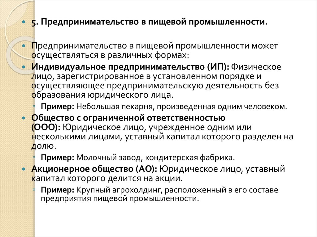 5. Предпринимательство в пищевой промышленности.