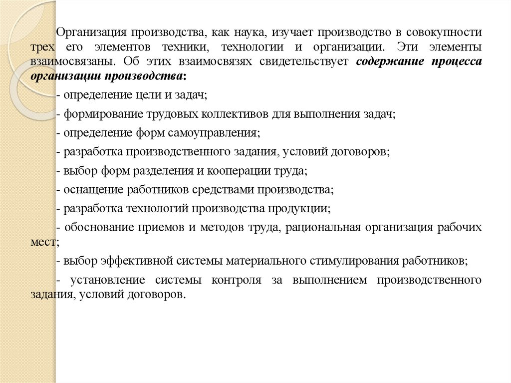 Организация производства – это комплекс действий,направленных на создание эффективной и разумной системы