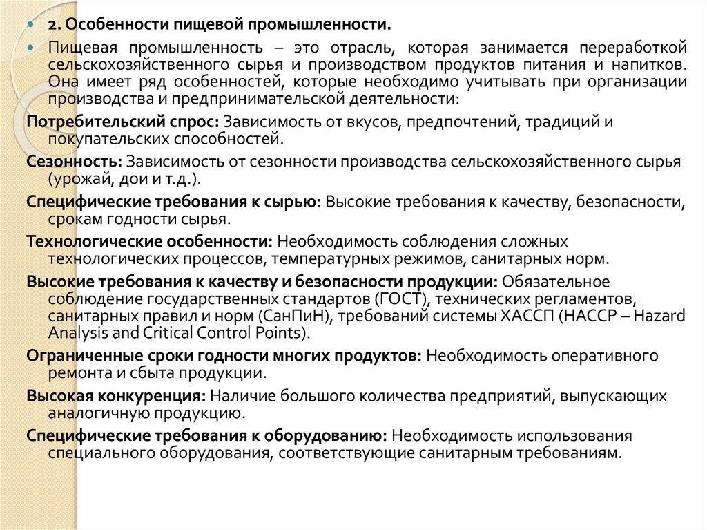 2. Особенности пищевой промышленности.