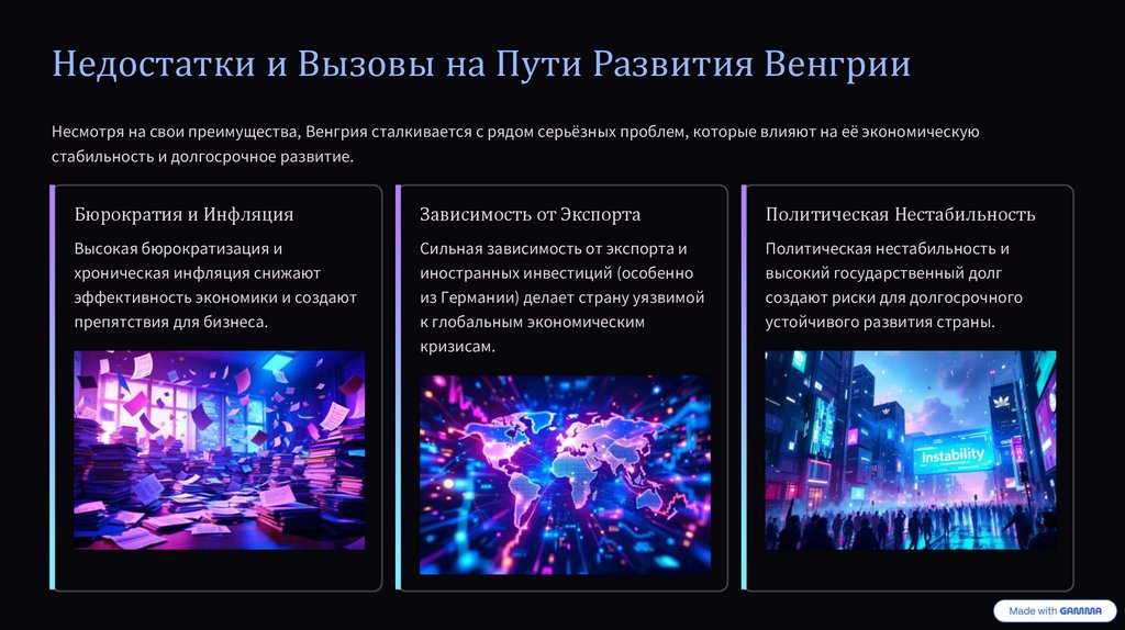 Недостатки и Вызовы на Пути Развития ВенгрииНесмотря на свои преимущества, Венгрия сталкивается с рядом серьёзных проблем, которые влияют на её экономическую