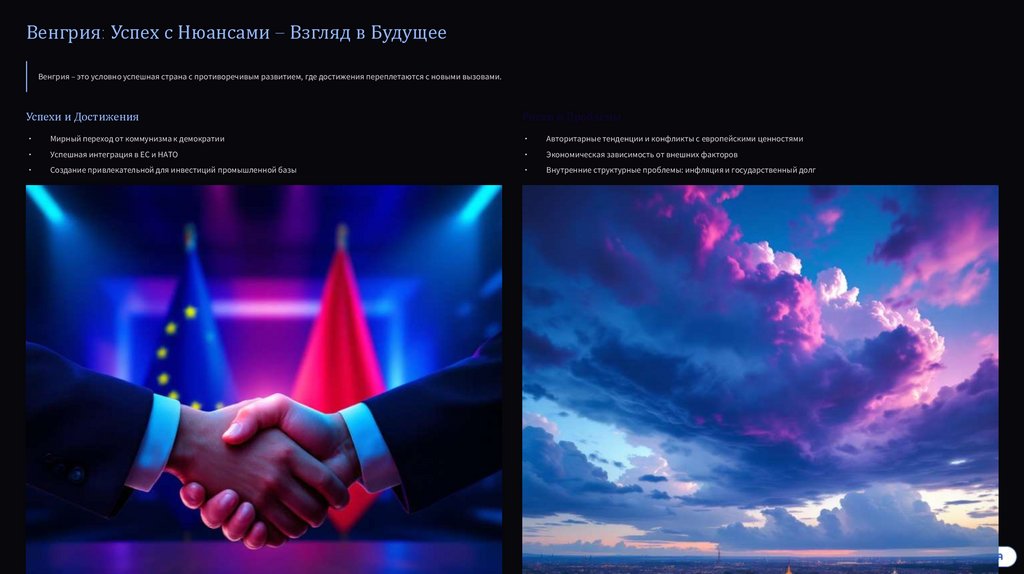 Венгрия: Успех с Нюансами – Взгляд в БудущееВенгрия – это условно успешная страна с противоречивым развитием, где достижения переплетаются с новыми вызовами.