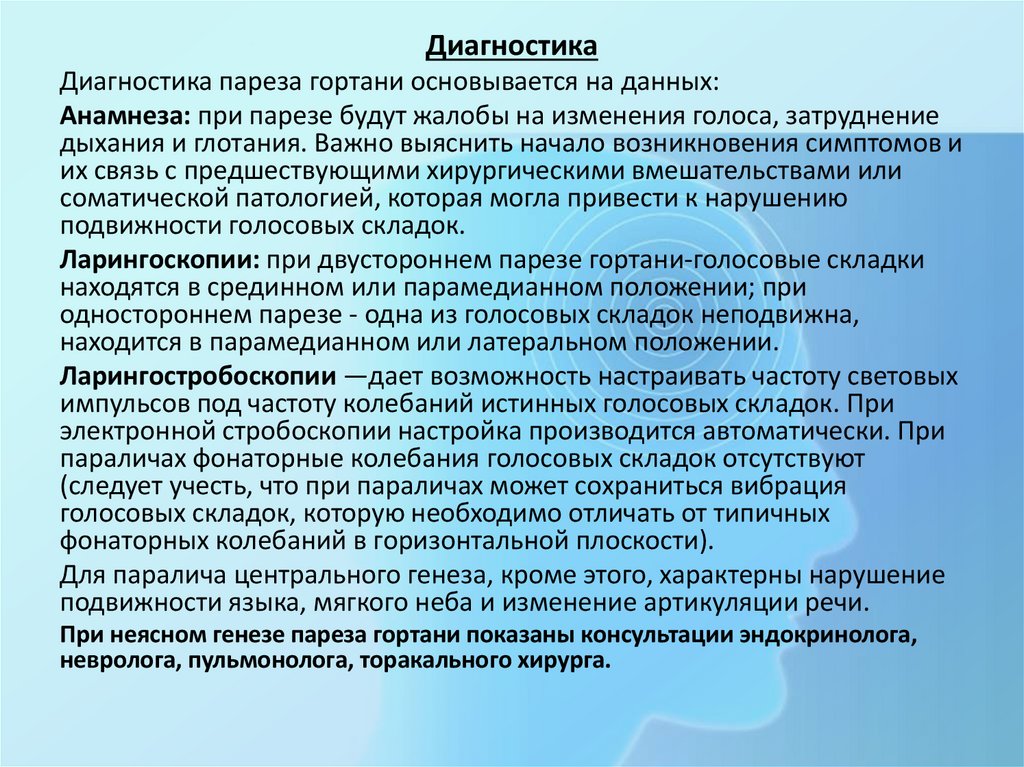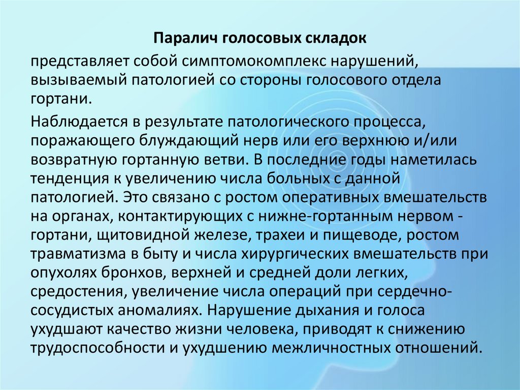 Паралич голосовых складокпредставляет собой симптомокомплекс нарушений,