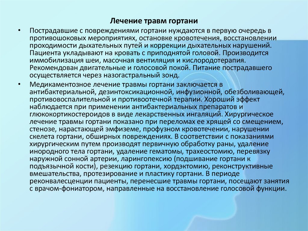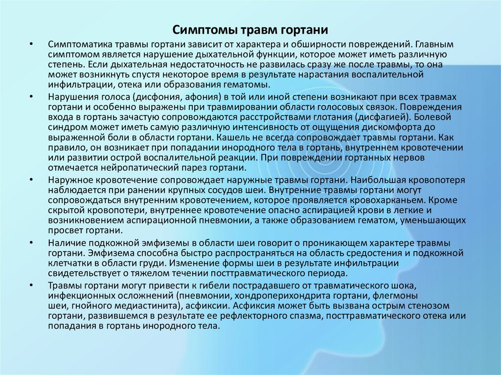 тела гортани и различные осложнения (эмфизему, абсцесс, медиастенит).