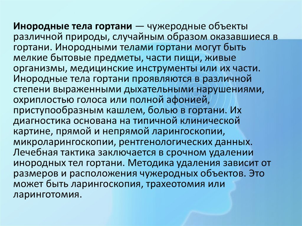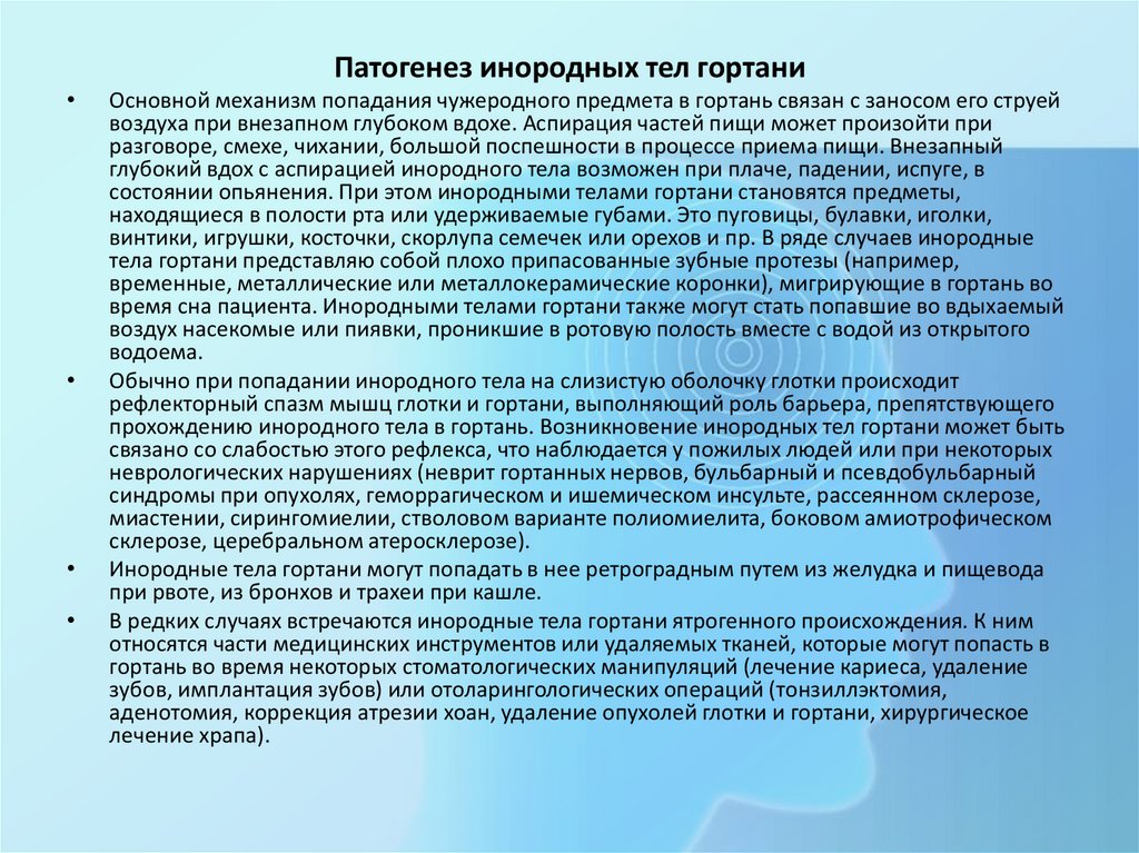 нахождения в гортани. Пребывание инородных тел в гортани в