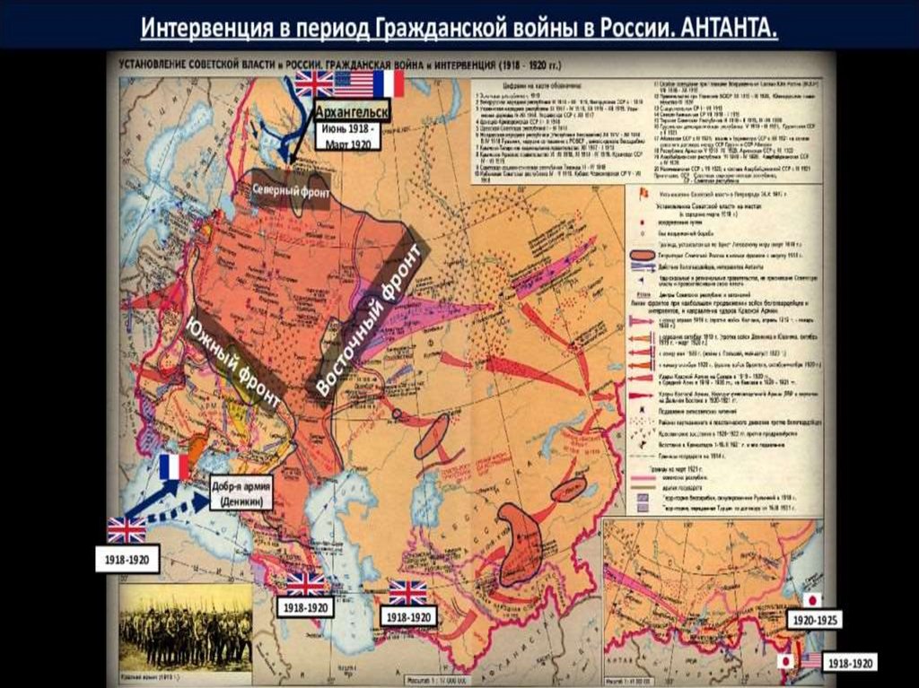высадили в Архангельске крупный десант войск Антанты. Здесь