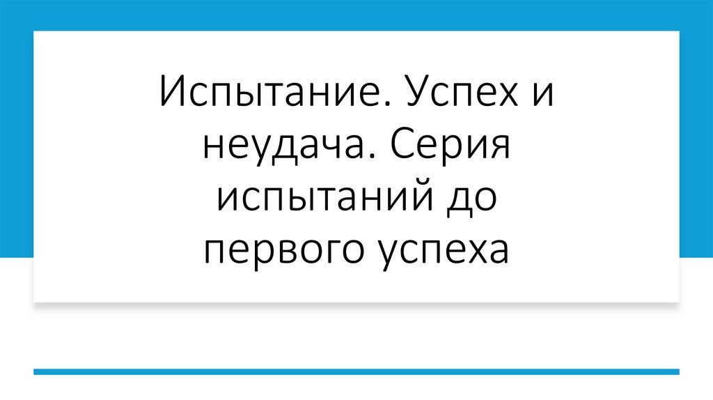 1. Испытание. Успех и неудача. Серия испытаний до первого успеха