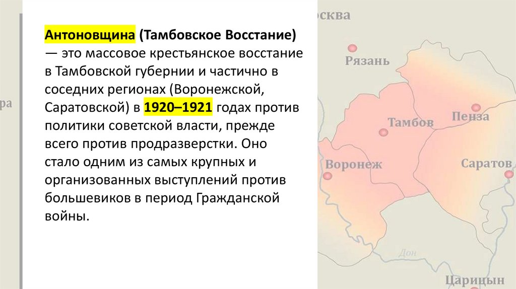 Антоновщина (Тамбовское Восстание)— это массовое крестьянское восстание
