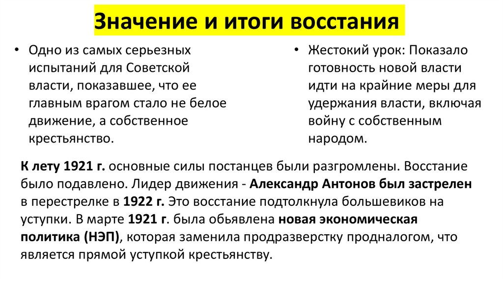 в перестрелке в 1922 г. Это восстание подтолкнула большевиков на