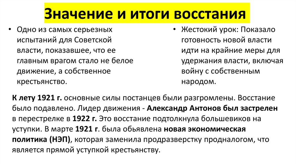 в перестрелке в 1922 г. Это восстание подтолкнула большевиков на