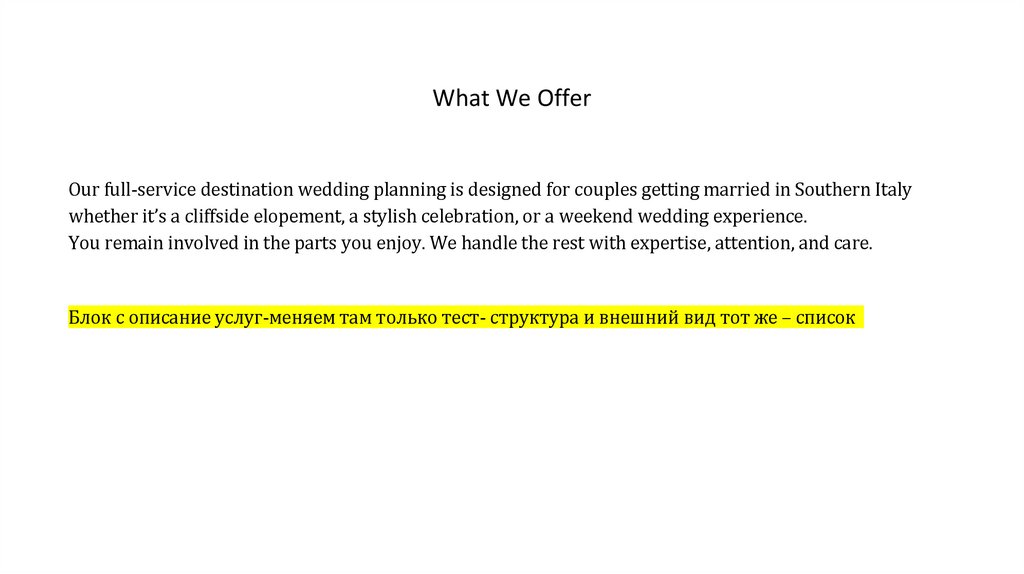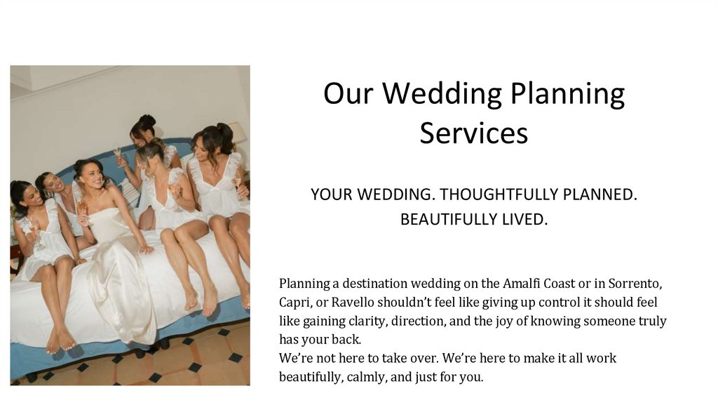 What We OfferOur full-service destination wedding planning is designed for couples getting married in Southern Italy