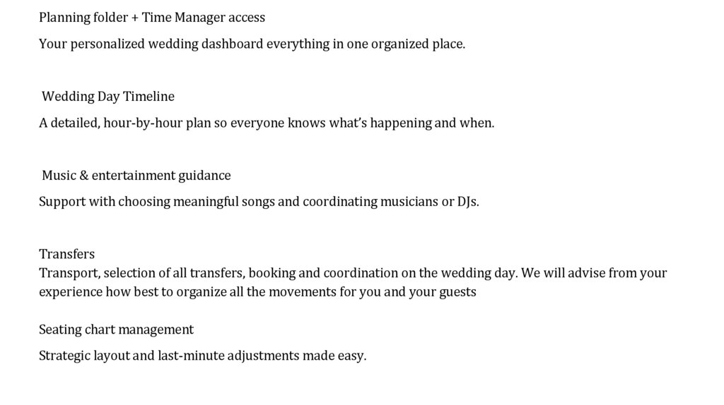 Planning folder + Time Manager accessYour personalized wedding dashboard everything in one organized place.