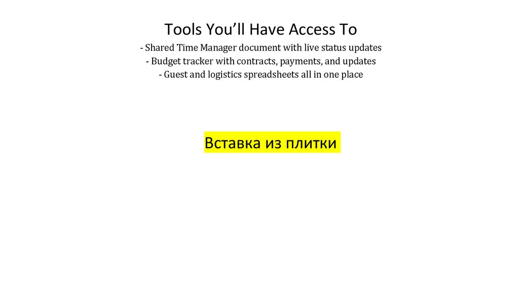 Tools You’ll Have Access To- Shared Time Manager document with live status updates