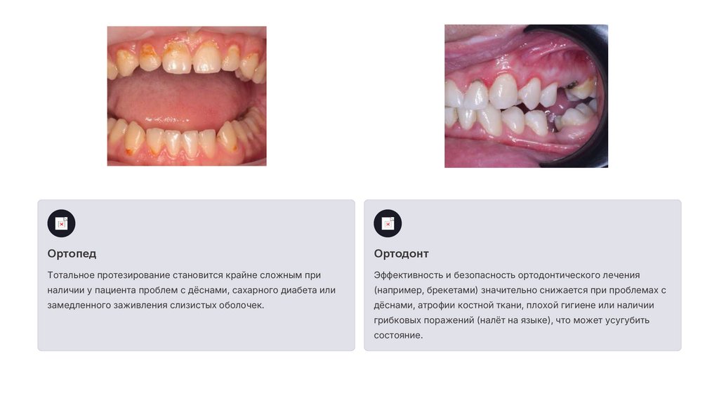 дёснами, атрофии костной ткани, плохой гигиене или наличии