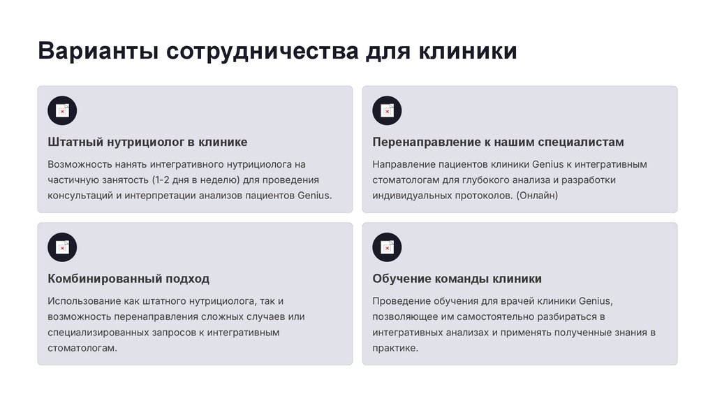 Варианты сотрудничества для клиникиШтатный нутрициолог в клинике
