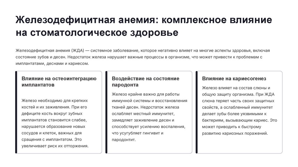 Железодефицитная анемия: комплексное влияниена стоматологическое здоровье