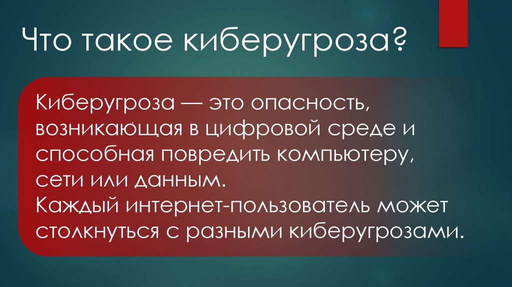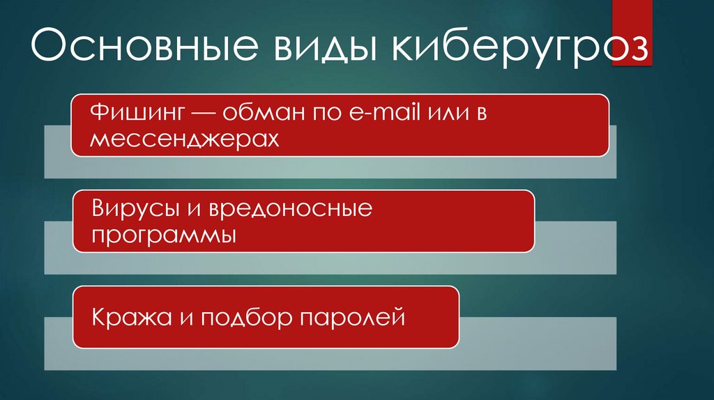 Основные виды киберугрозФишинг — обман по е-mail или в