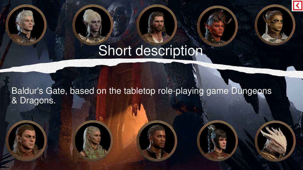 Short descriptionBaldur's Gate, based on the tabletop role-playing game Dungeons