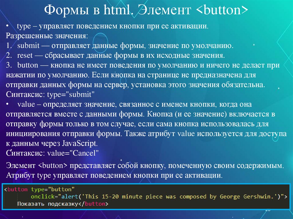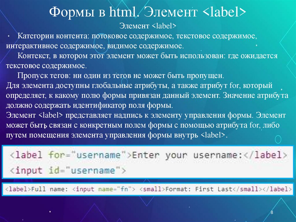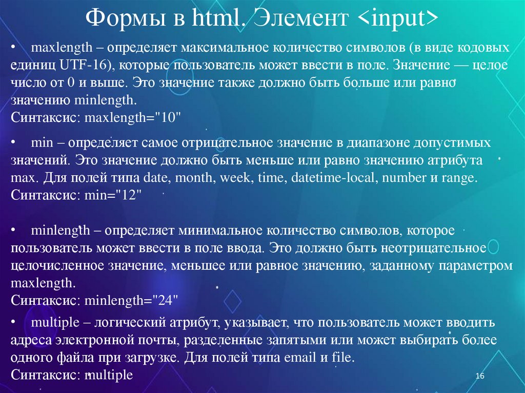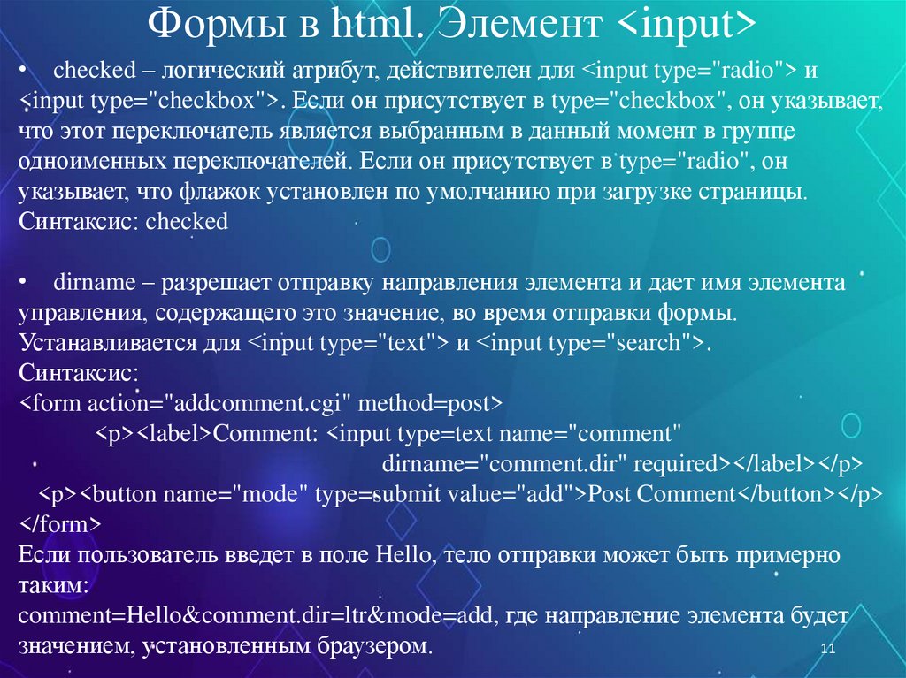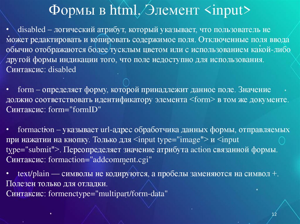 Формы в html. Элемент <form>• multipart/form-data — данные формы не кодируются.