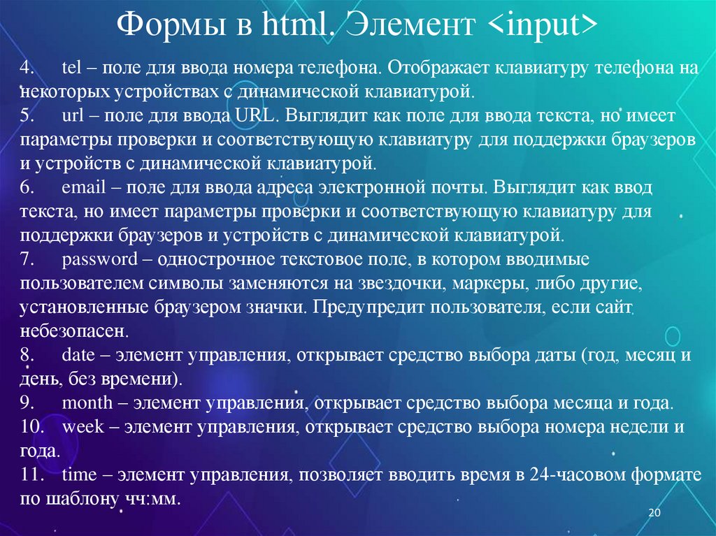 типа данных, ожидаемых в поле, для браузера не предоставляется.