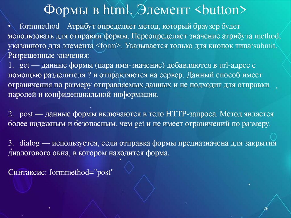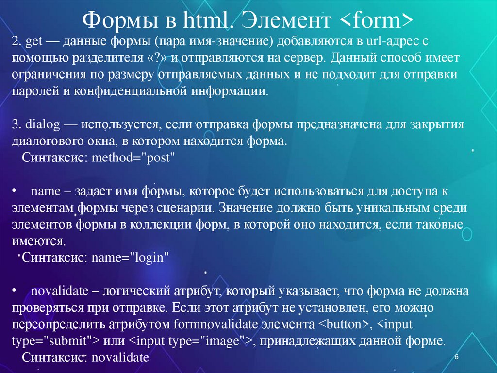 Формы в html. Элемент <form>2. get — данные формы (пара имя-значение) добавляются в url-адрес с