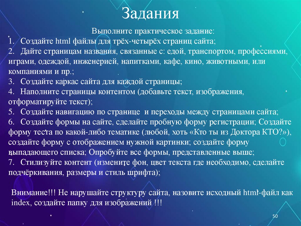 Внимание!!! Не нарушайте структуру сайта, назовите исходный html-файл как