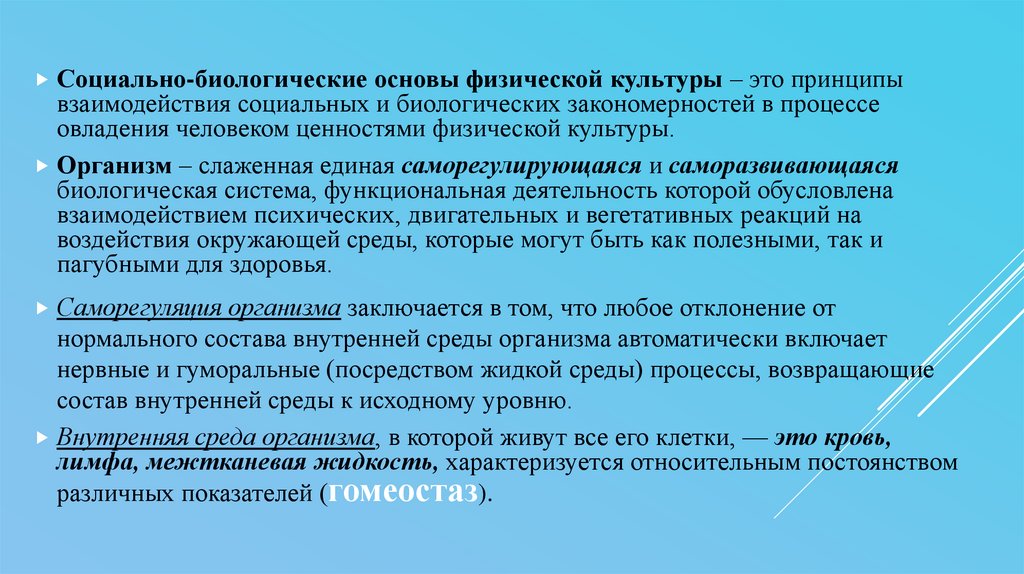 Социально-биологические основы физической культуры – это принципывзаимодействия социальных и биологических закономерностей в процессе