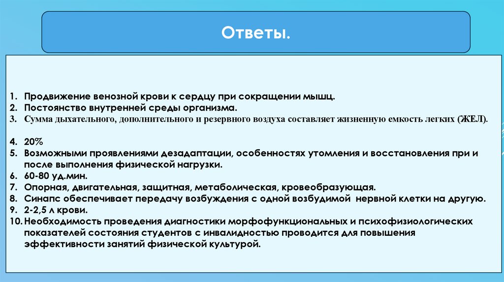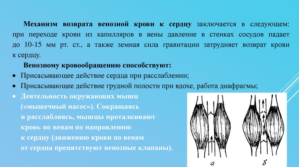 Ответы.1. Продвижение венозной крови к сердцу при сокращении мышц.