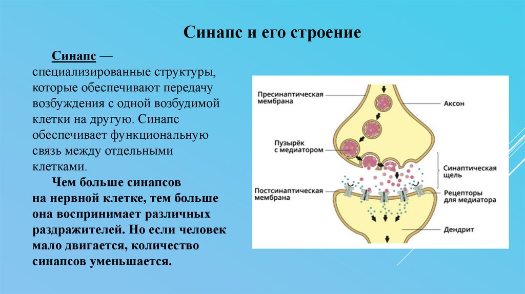 8. Синапс обеспечивает передачу возбуждения с одной возбудимой нервной клетки на другую.