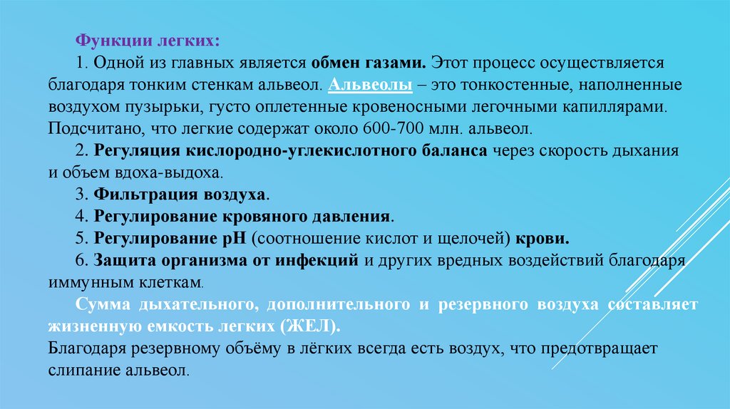 3. Сумма дыхательного, дополнительного и резервного воздуха составляет жизненную емкость легких (ЖЕЛ).