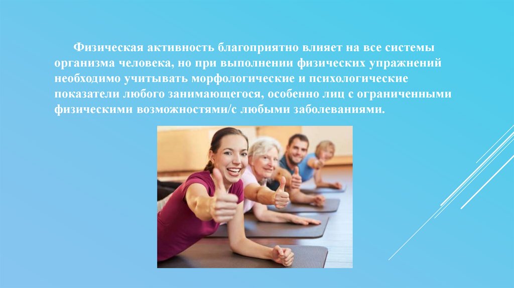 Физическая активность благоприятно влияет на все системыорганизма человека, но при выполнении физических упражнений
