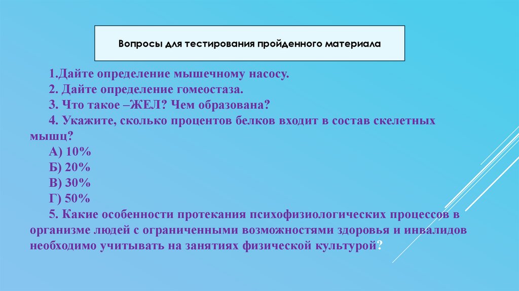 Вопросы для тестирования пройденного материала1.Дайте определение мышечному насосу.