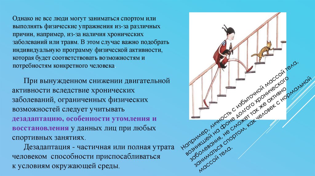 Однако не все люди могут заниматься спортом иливыполнять физические упражнения из-за различных