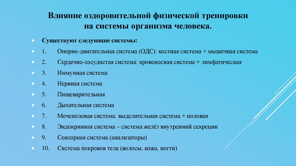 Влияние оздоровительной физической тренировкина системы организма человека.