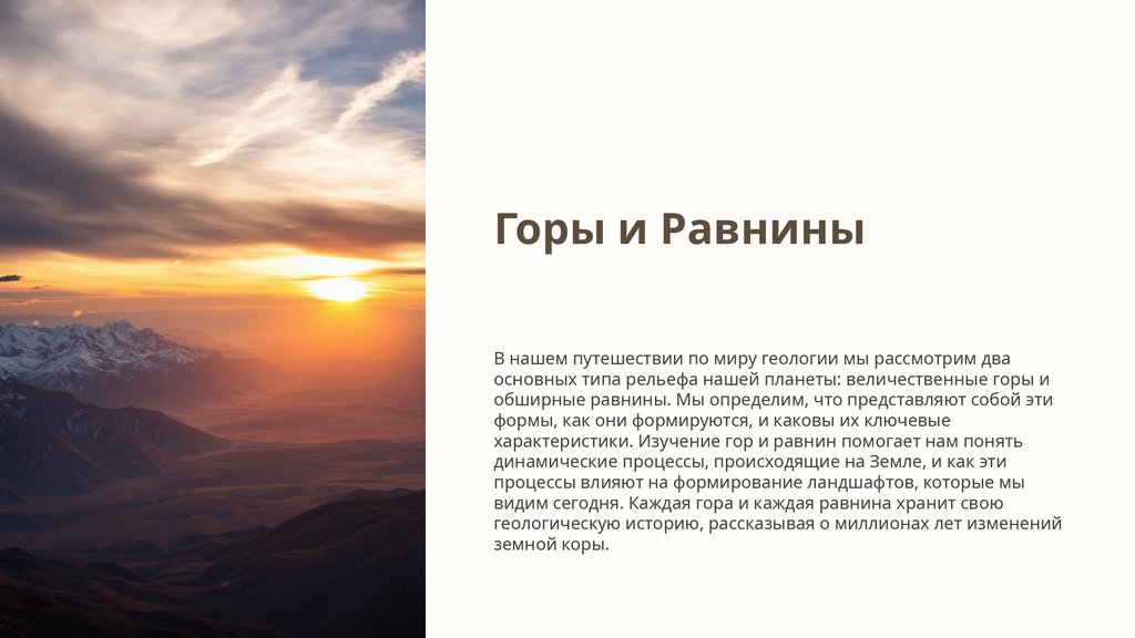 Горы и РавниныВ нашем путешествии по миру геологии мы рассмотрим два