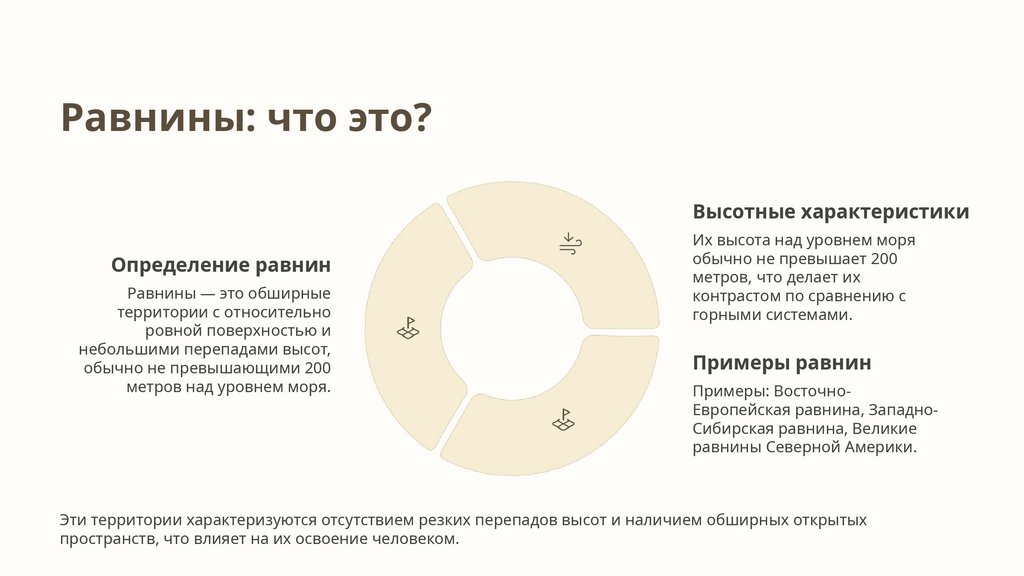 Примеры: ВосточноЕвропейская равнина, ЗападноСибирская равнина, Великие