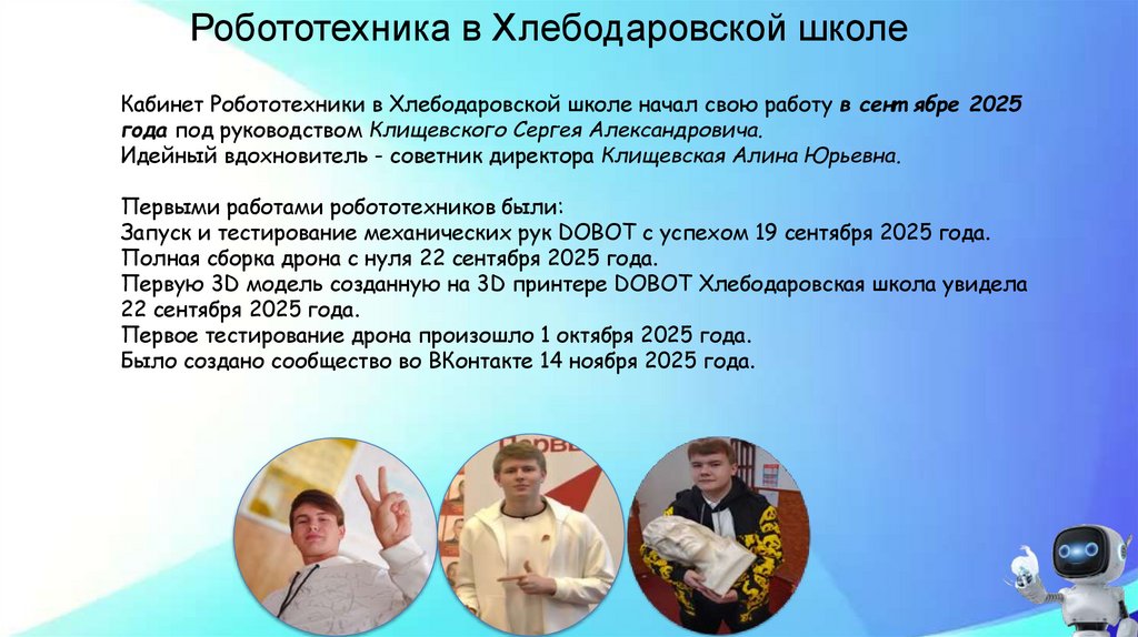 Робототехника в Хлебодаровской школеКабинет Робототехники в Хлебодаровской школе начал свою работу в сент ябре 2025