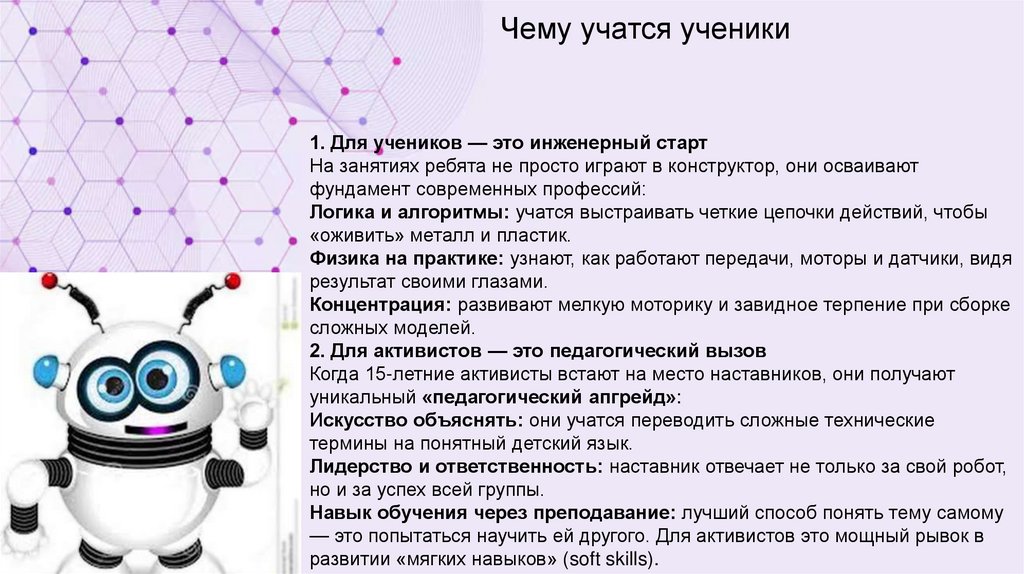 Чему учатся ученики1. Для учеников — это инженерный старт