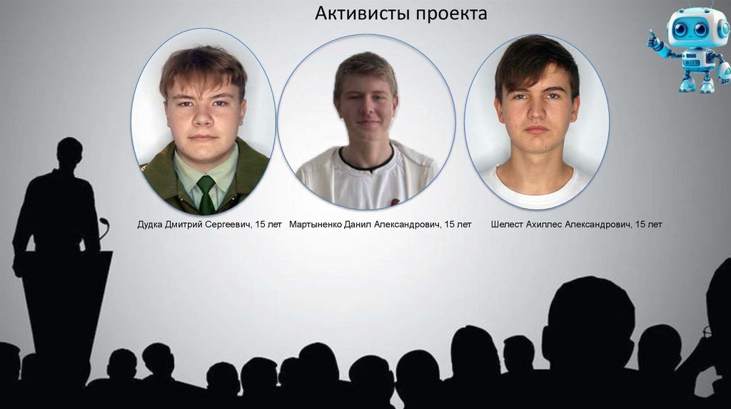 Активисты проектаДудка Дмитрий Сергеевич, 15 лет Мартыненко Данил Александрович, 15 лет