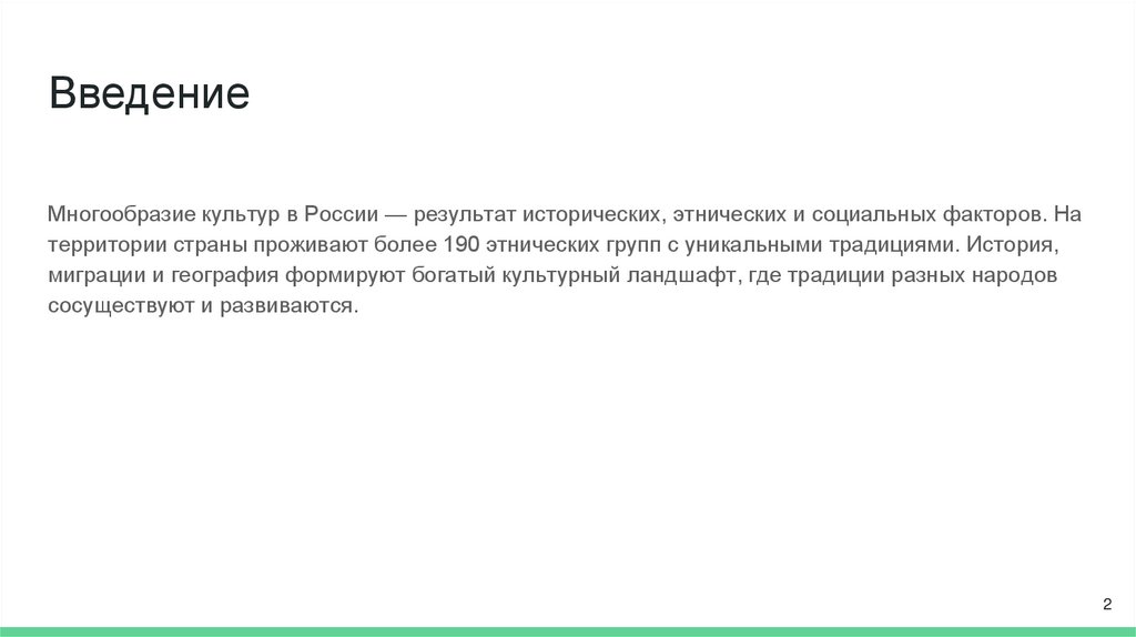 ВведениеМногообразие культур в России — результат исторических, этнических и социальных факторов. На