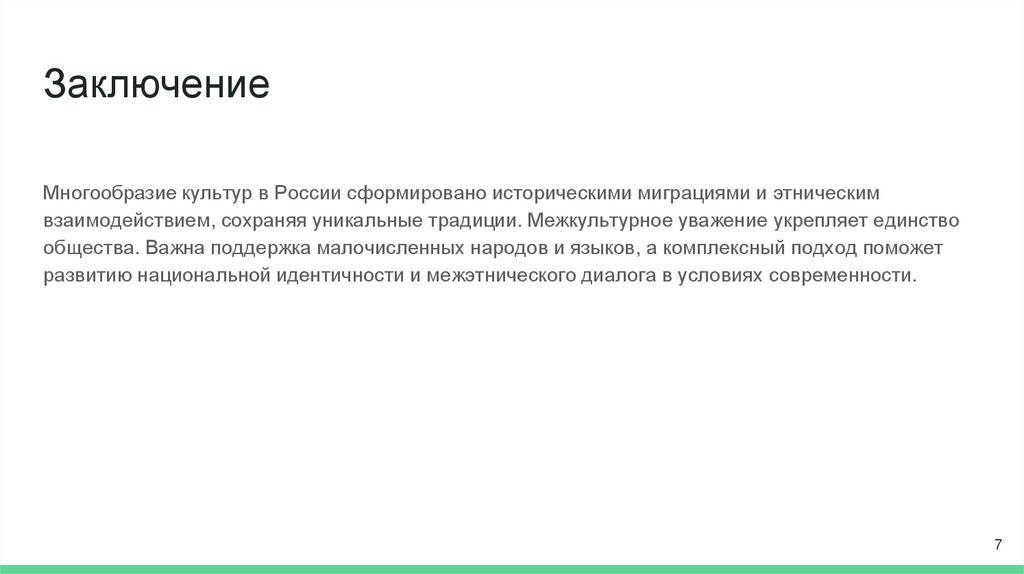 ЗаключениеМногообразие культур в России сформировано историческими миграциями и этническим