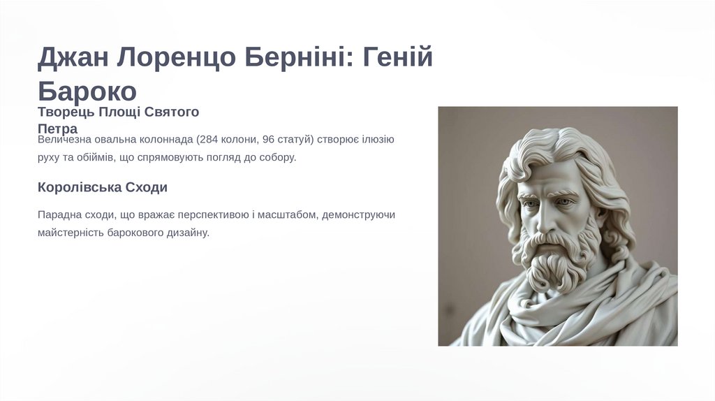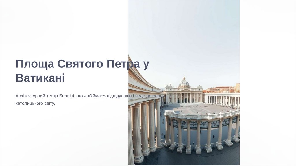 Величезна овальна колоннада (284 колони, 96 статуй) створює ілюзію
