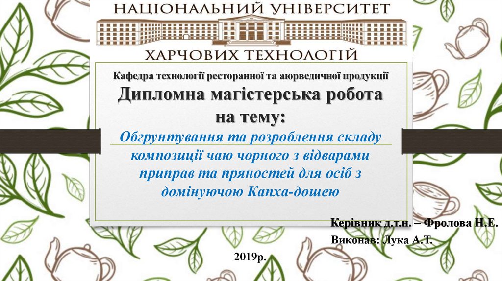 1. Кафедра технології ресторанної та аюрведичної продукції Дипломна магістерська робота на тему: Обгрунтування та розроблення