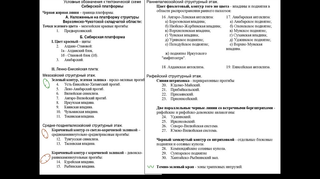 Условные обозначения к тектонической схемеСибирской платформы