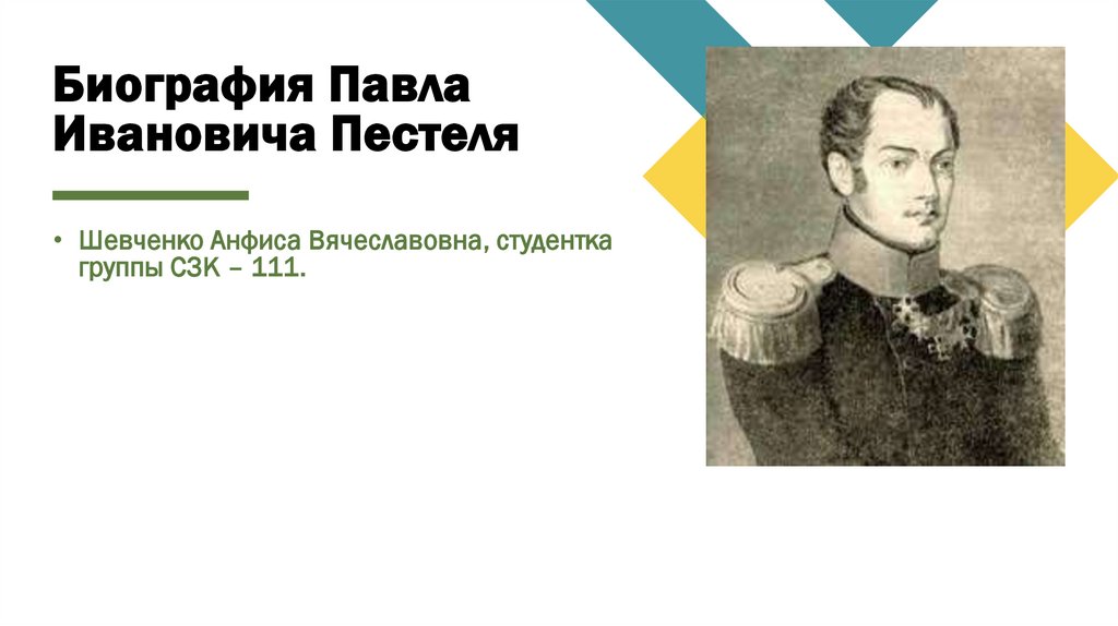 Один из основателей и наиболее радикальныхидеологов тайных обществ — «Союза спасения»(18161817) и «Союза благоденствия»(1818-1821).