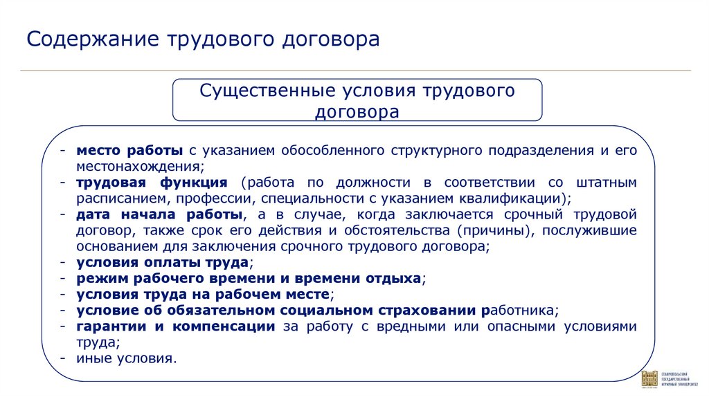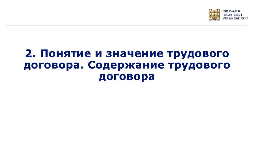 2. Понятие и значение трудового договора. Содержание трудового